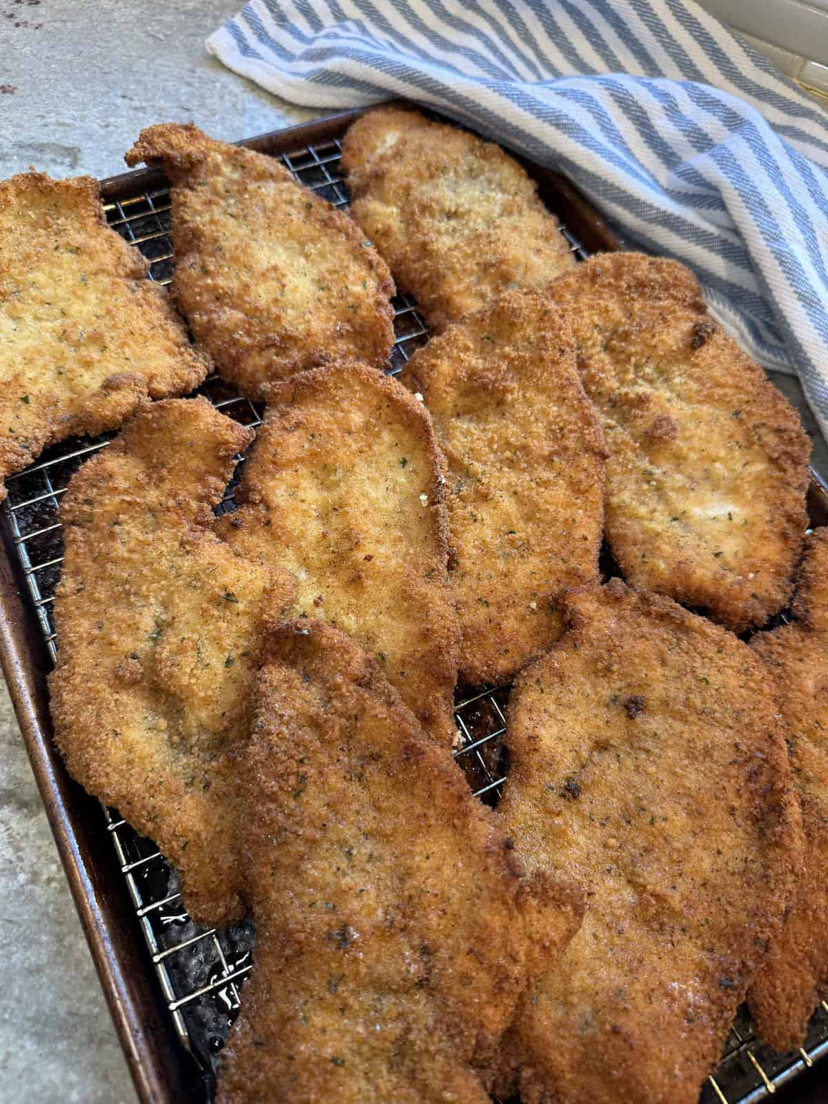 PRO TIP: Draining the cutlets on a wire rack allows the air to circulate and keeps the crust golden and crispy.