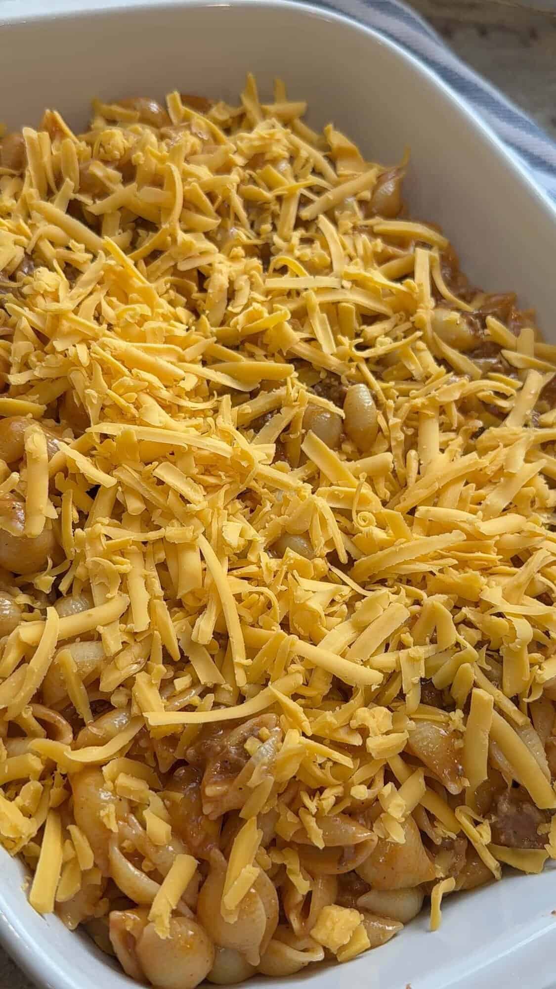 - Cheddar Cheese- Gives it a bold, classic cheeseburger flavor and melts beautifully throughout the cassrerole.