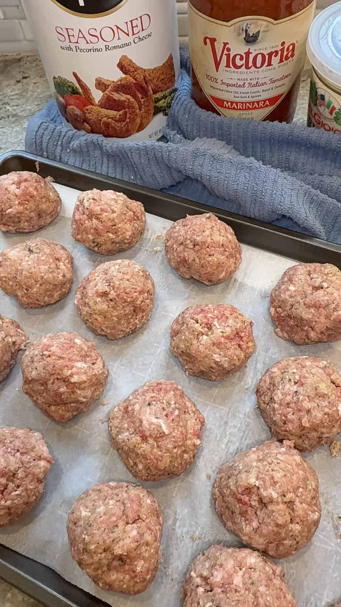 - Tomato Sauce- I used Victorias Marinara Sauce here but any brand will do. It keeps the meatballs moist and tender.