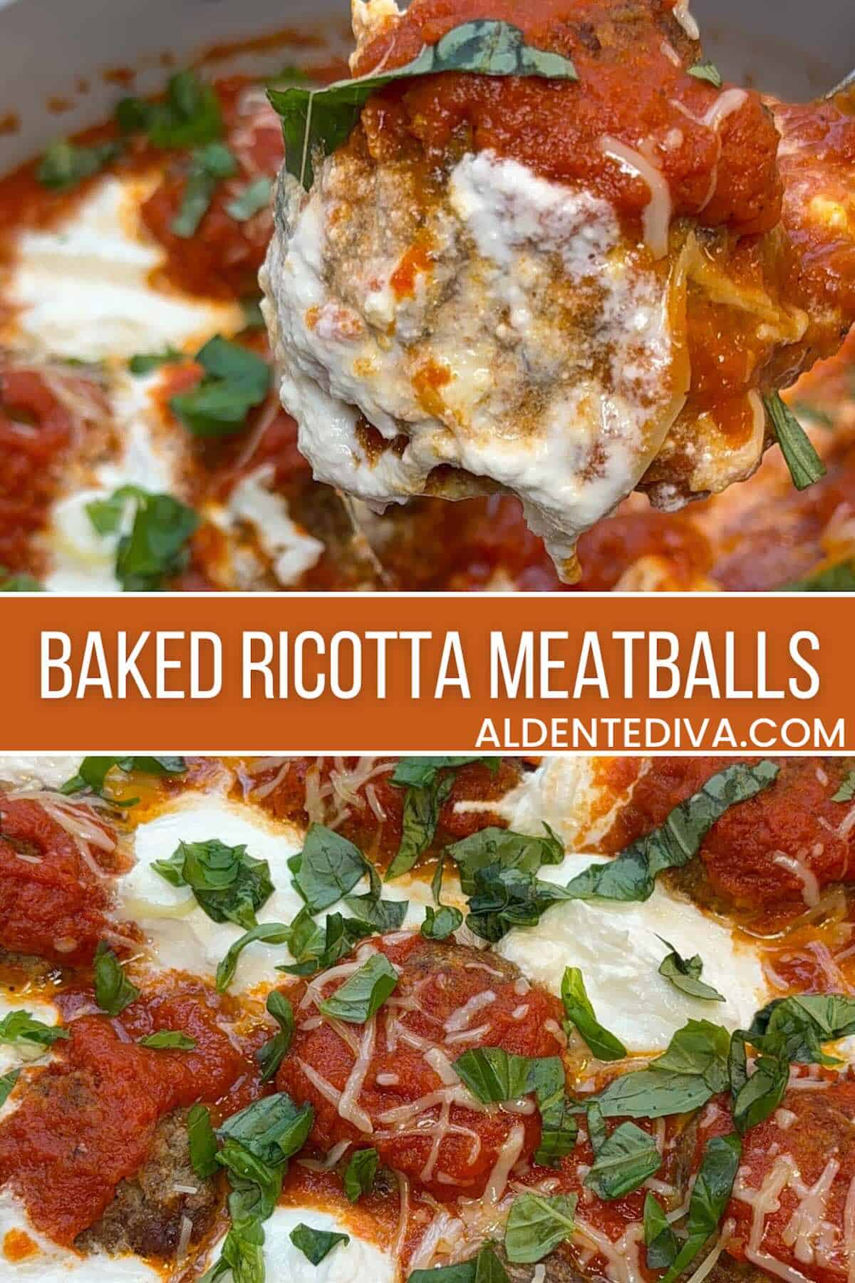 Baked ricotta meatballs are made with ground beef, ricotta cheese, egg, and seasoned breadcrumbs, then baked until tender and finished in a flavorful marinara sauce.