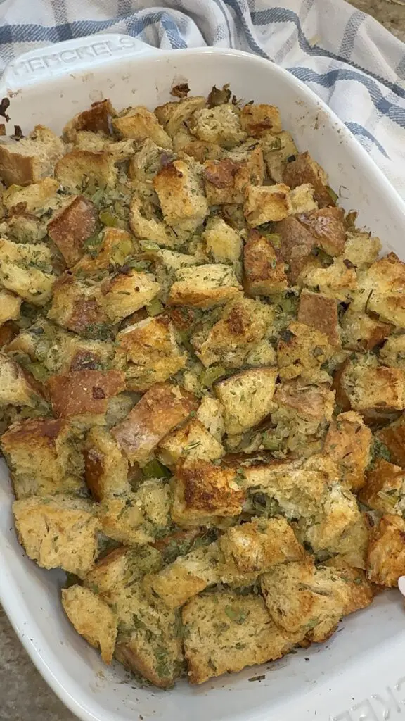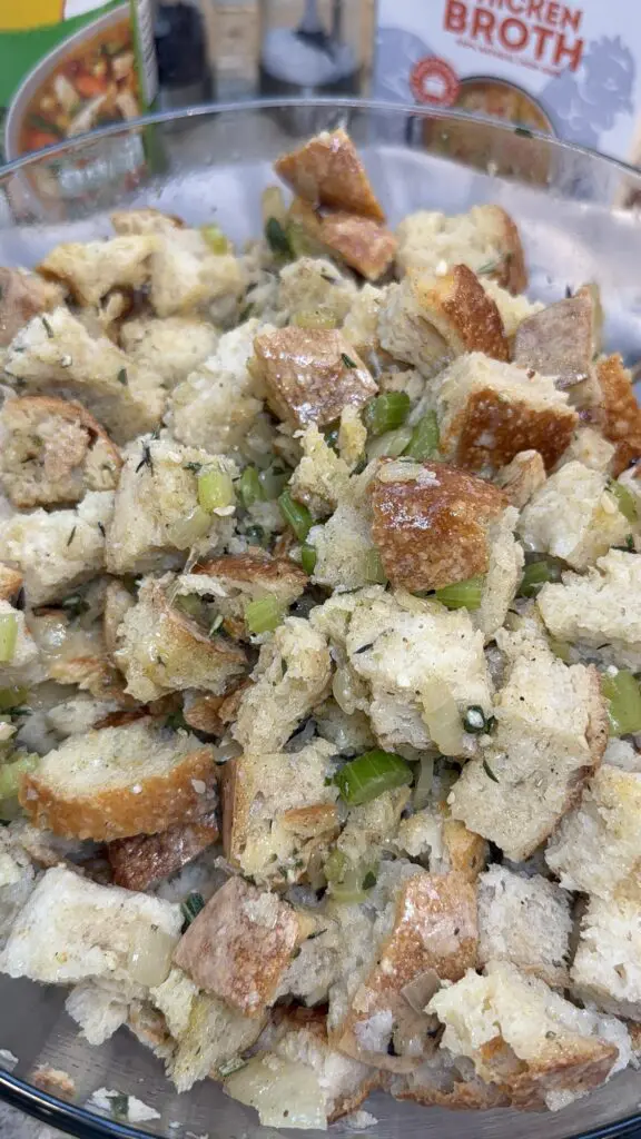 NOTE: Some people like a “wetter” stuffing. In that case, feel free to add an addition ¼-1/2 a cup of chicken broth.