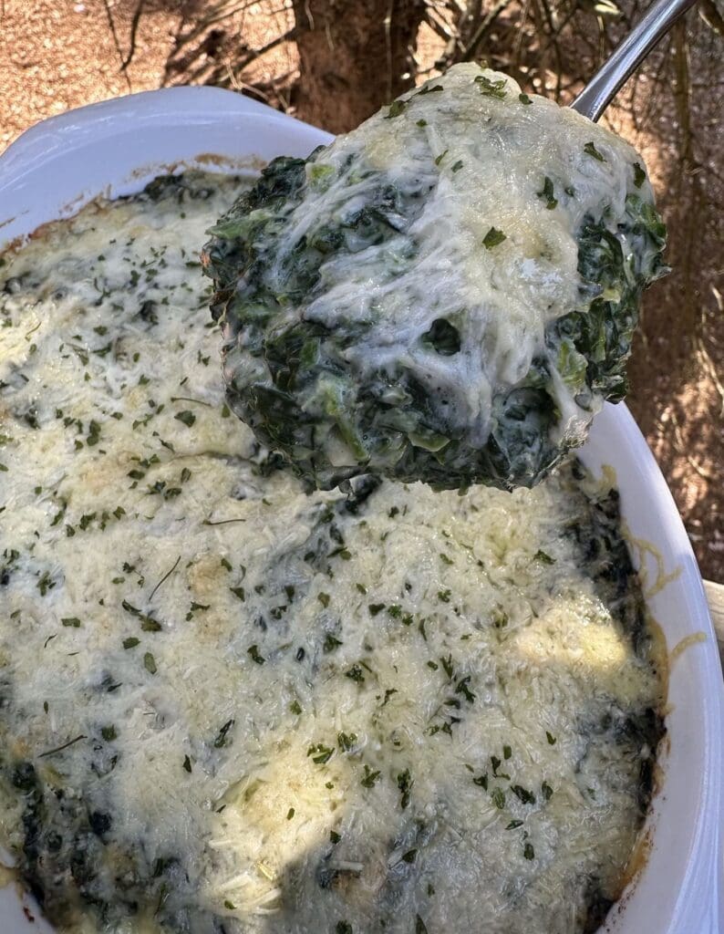Cheesy spinach gratin is one of my family’s all time favorite side dishes.
