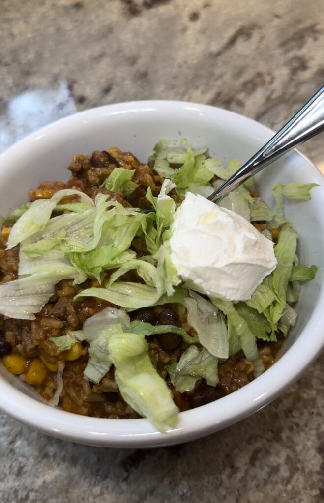 My family loves to add their own toppings to this rice like sour cream, salsa, shredded lettuce and whatever else they’re in the mood for that night.