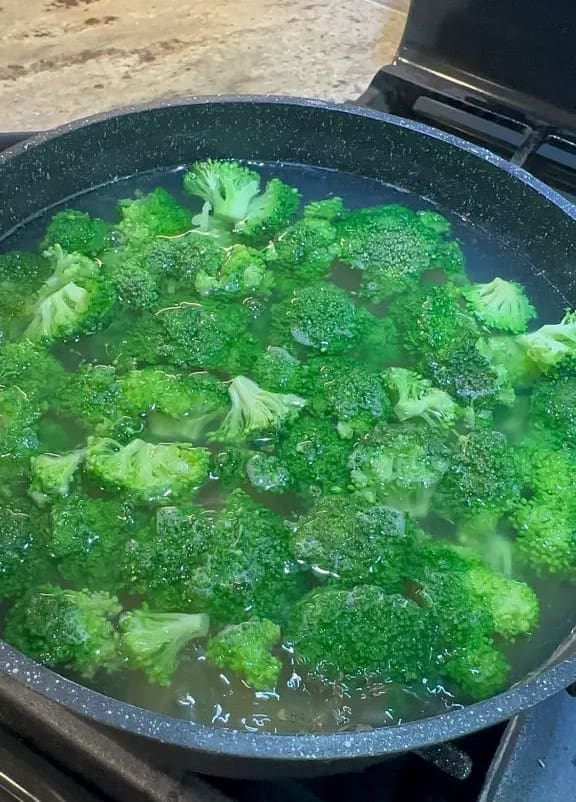 - Next, add the chopped broccoli to the boiling water and let that cook together with the pasta for the additional time until the pasta is al dente.