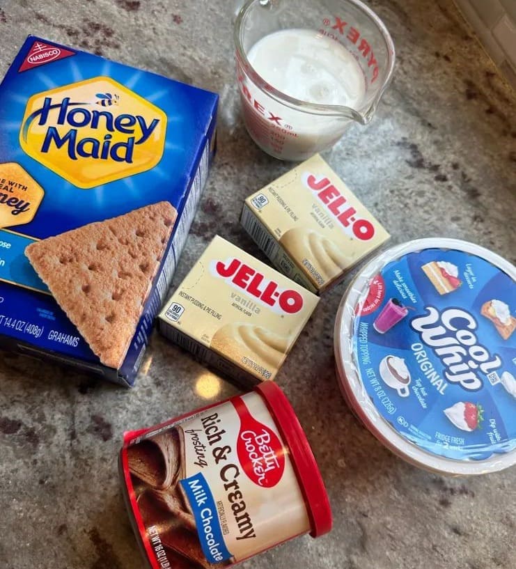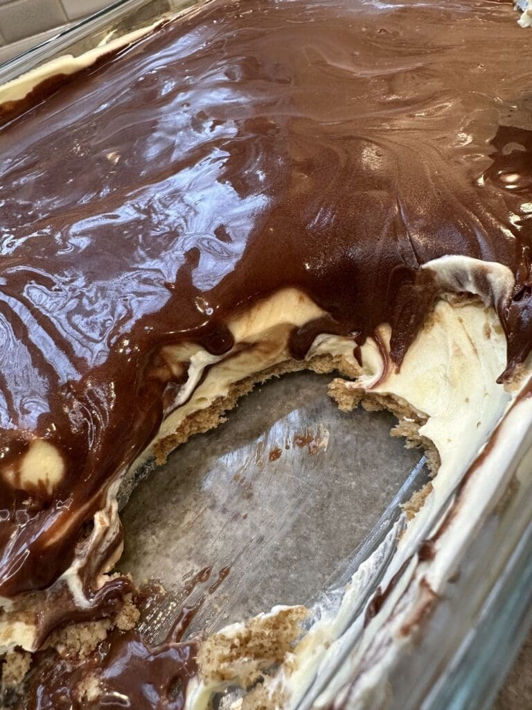 I have a question, you say that the last layer before the icing is graham crackers but in the pictures it shows you pouring chocolate over a layer of pudding mix. Should we do the pudding mix in thirds and make the pudding mix the last layer or is the last layer actually the graham crackers and then the icing??