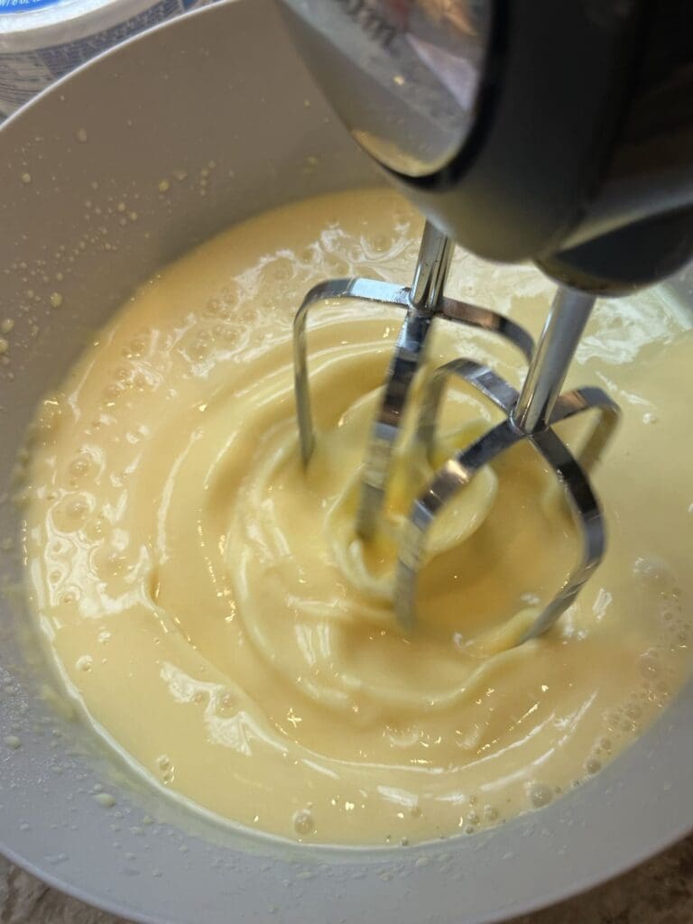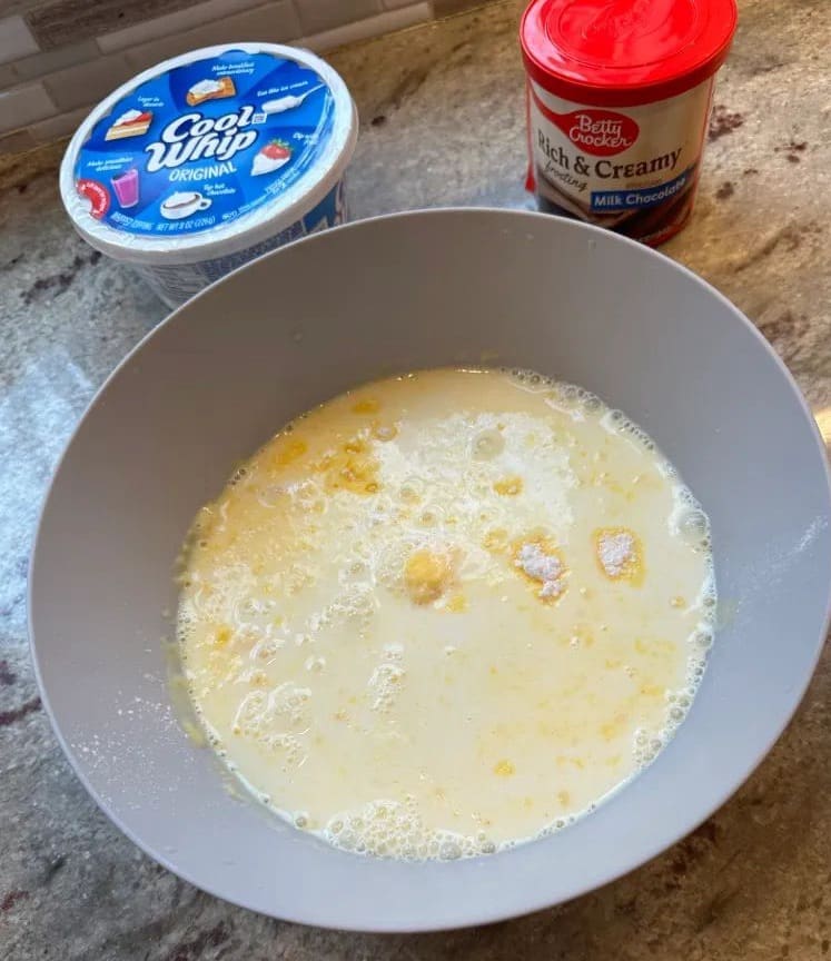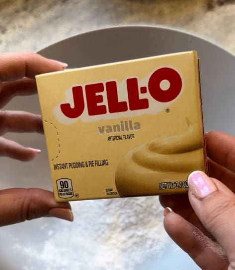 - First, add the instant vanilla pudding boxes into a medium sized bowl and add the milk. Then, whisk the milk and instant pudding together until the mixture starts to thicken. I used an electric mixer to speed the process up but whisking will work, too.