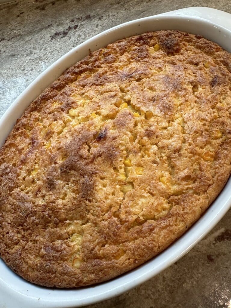 This classic corn soufflé is a holiday staple using frozen and creamed corn, jiffy corn muffin mix and just a few other simple ingredients.