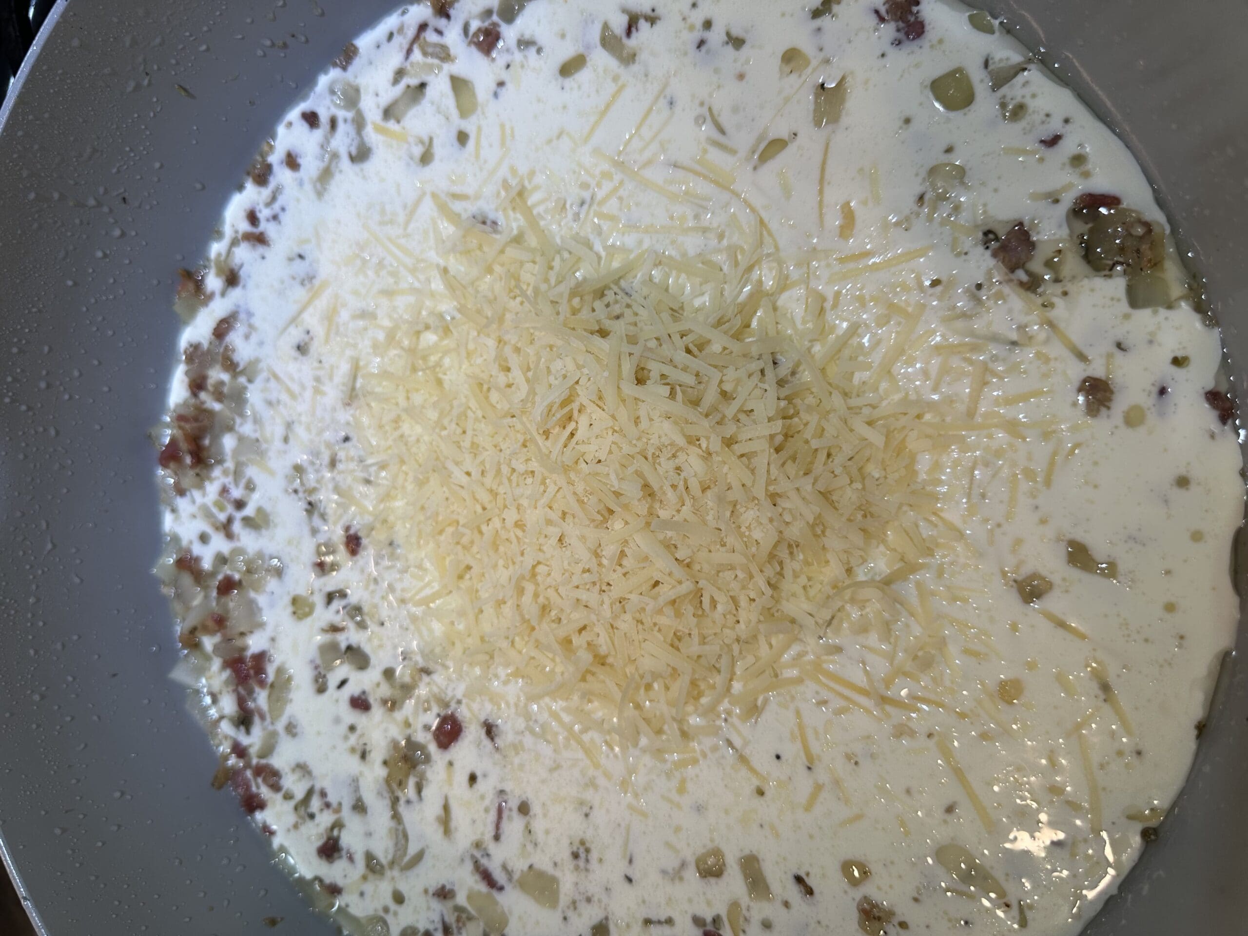 - Add the heavy cream and parmesan cheese. Stir until everything is combined smoothly.