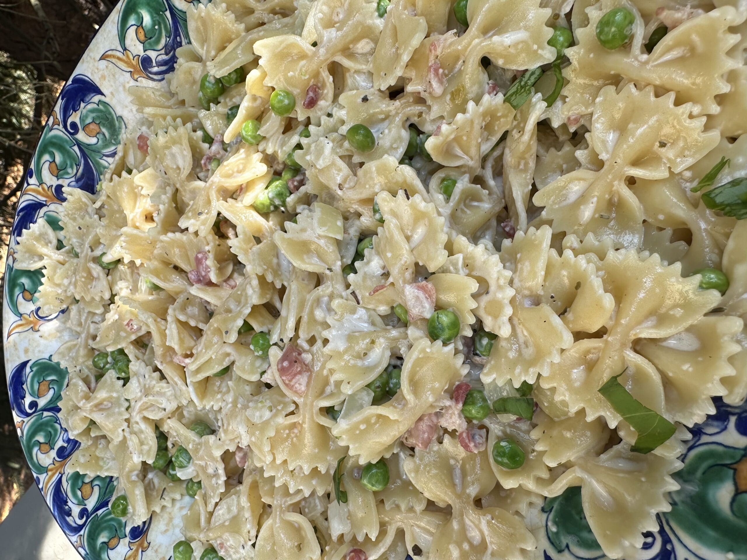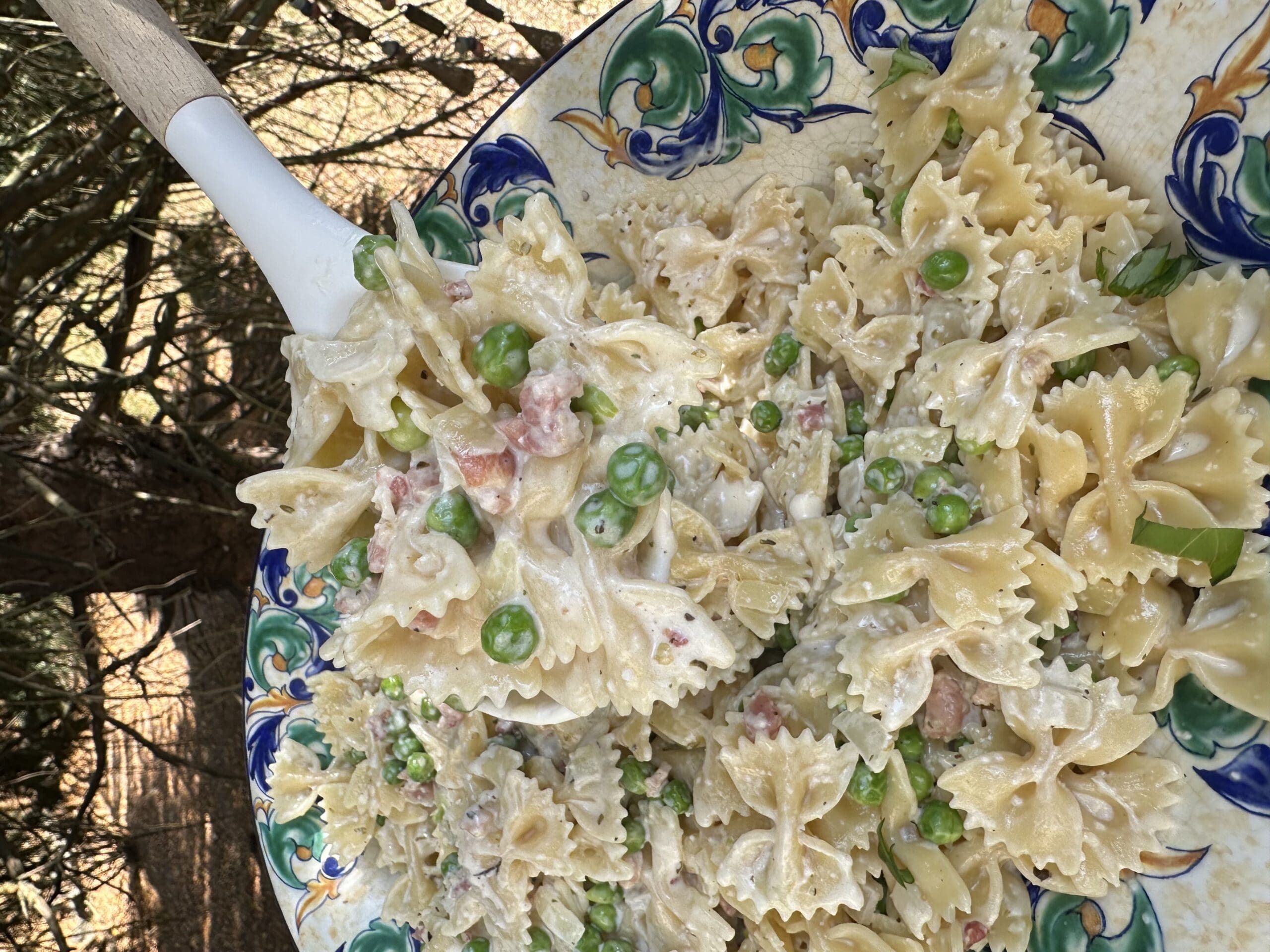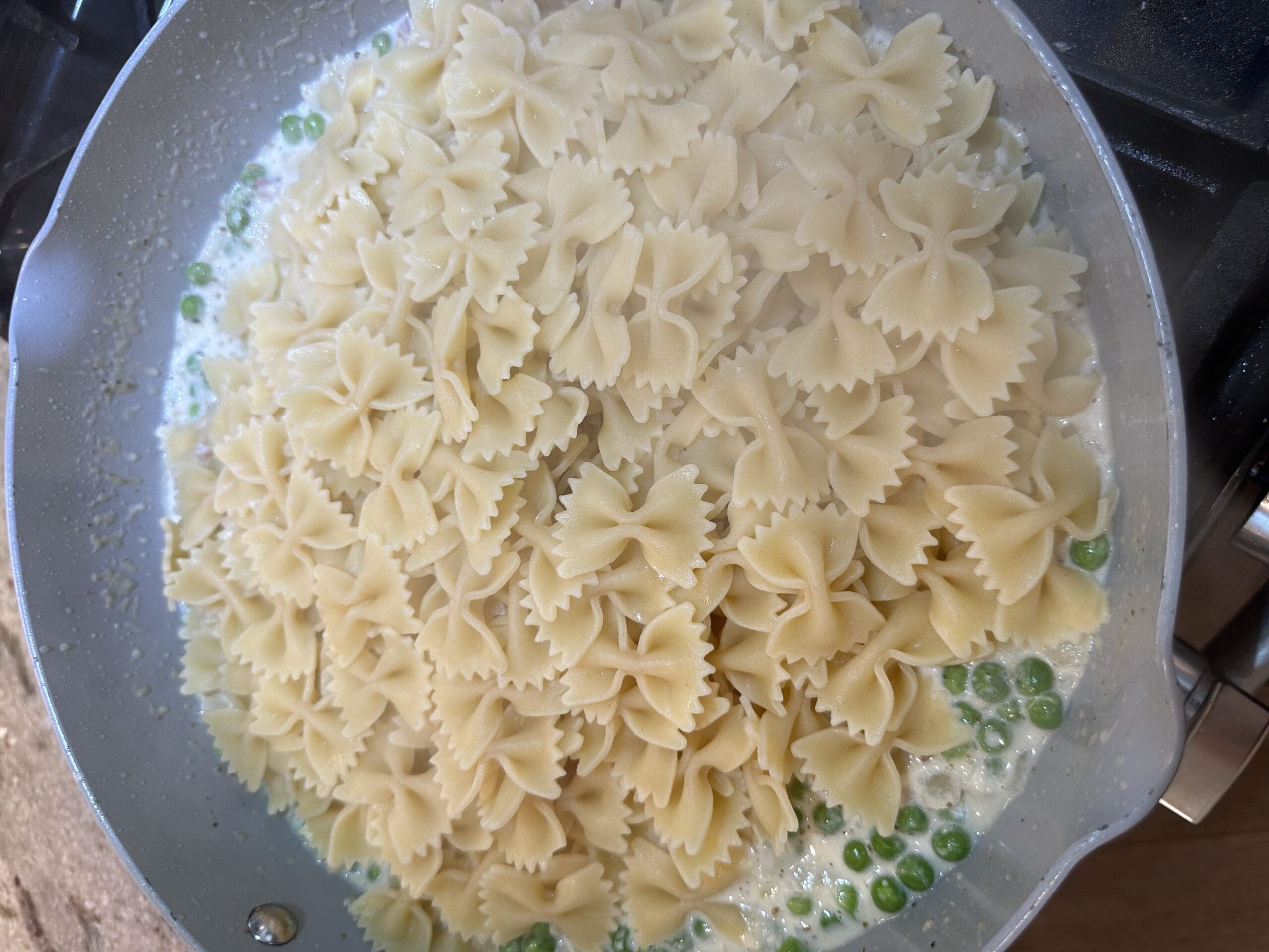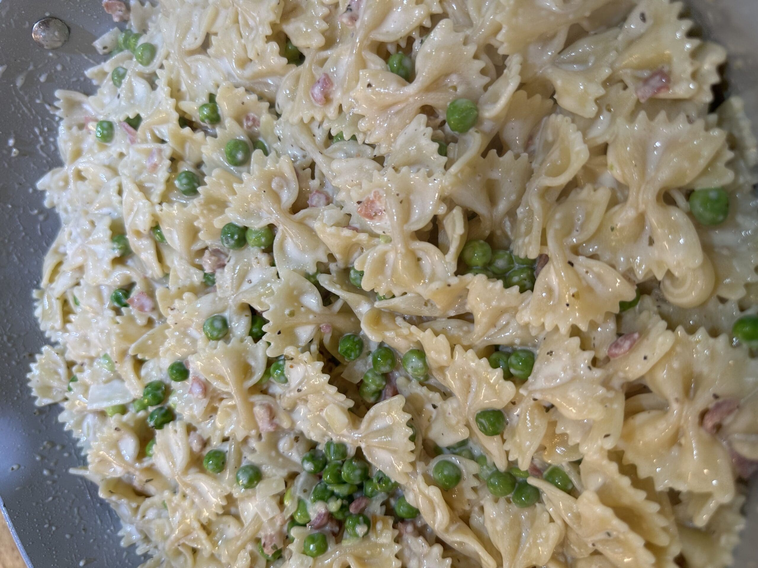 Combine that with some pasta, sweet peas and a cheesy cream sauce and you've got yourself one home run dinner.
