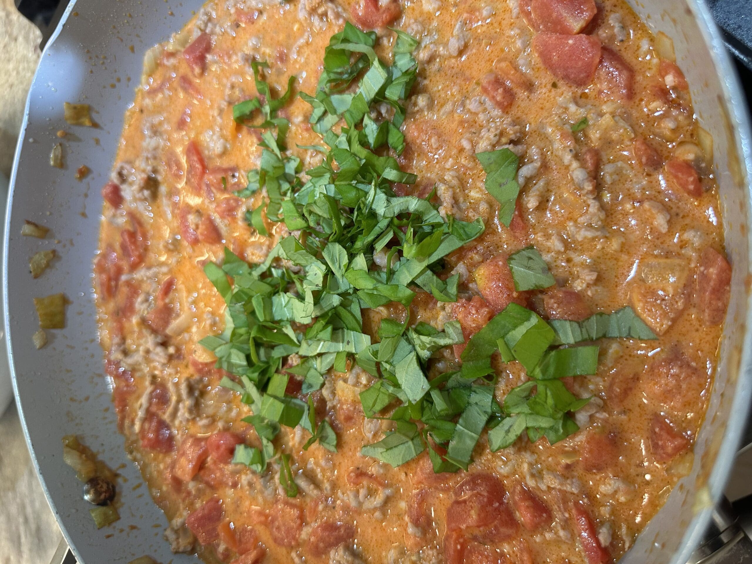 Stir in the cream and fresh basil and continue to let it cook for another 5 minutes.
