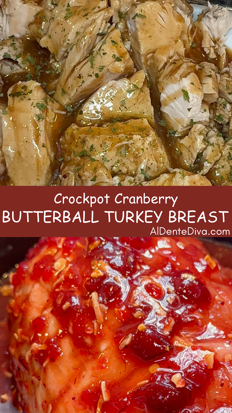 Crockpot Butterball cranberry turkey breast slowly simmers until tender and juicy, in a sweet and tangy bath of rich cranberry sauce, orange juice, apple cider and seasonings that melts into every bite.