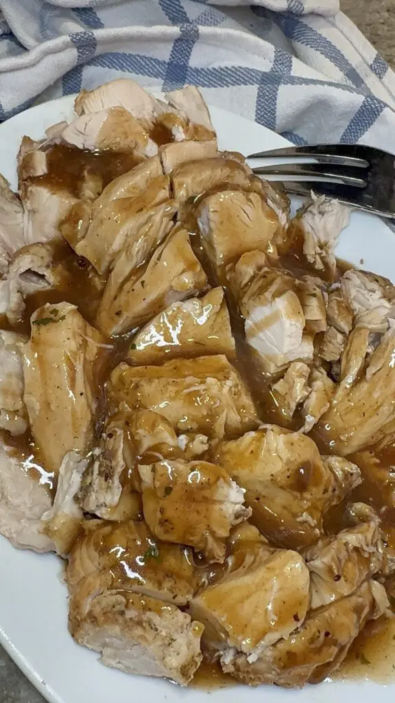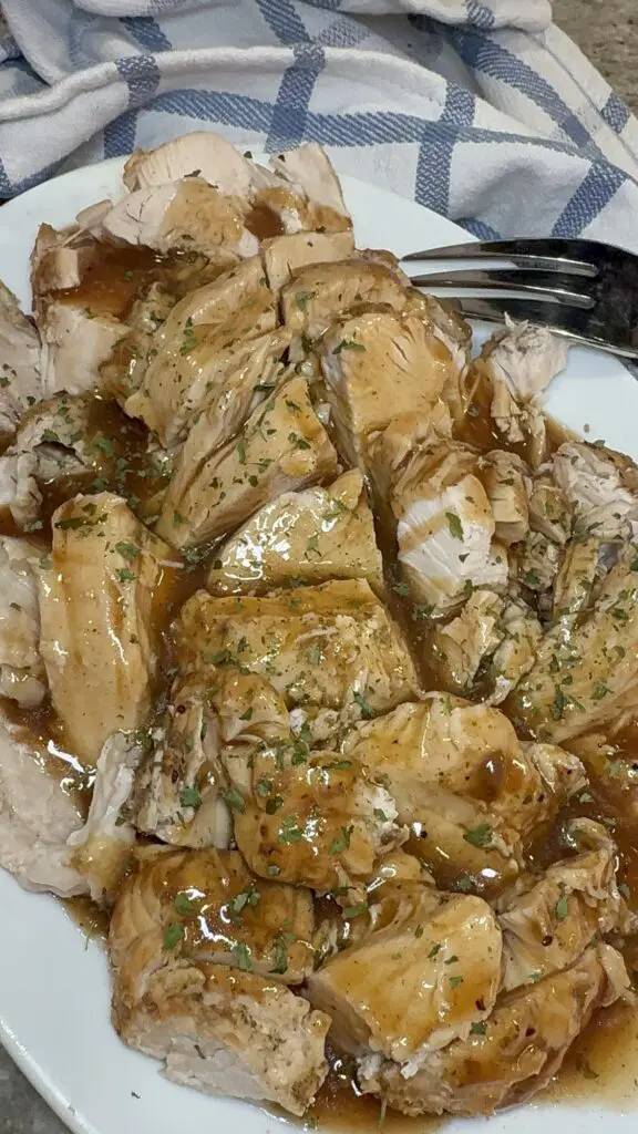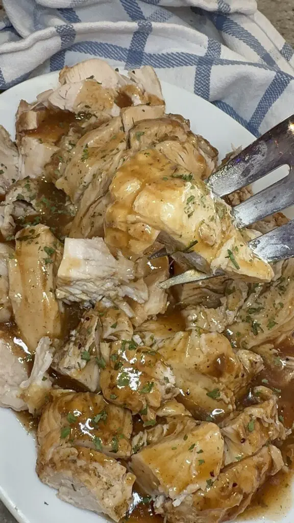 - Juicy- Slow cooking the turkey breast in all that sauce and juice keeps the meat so juicy.