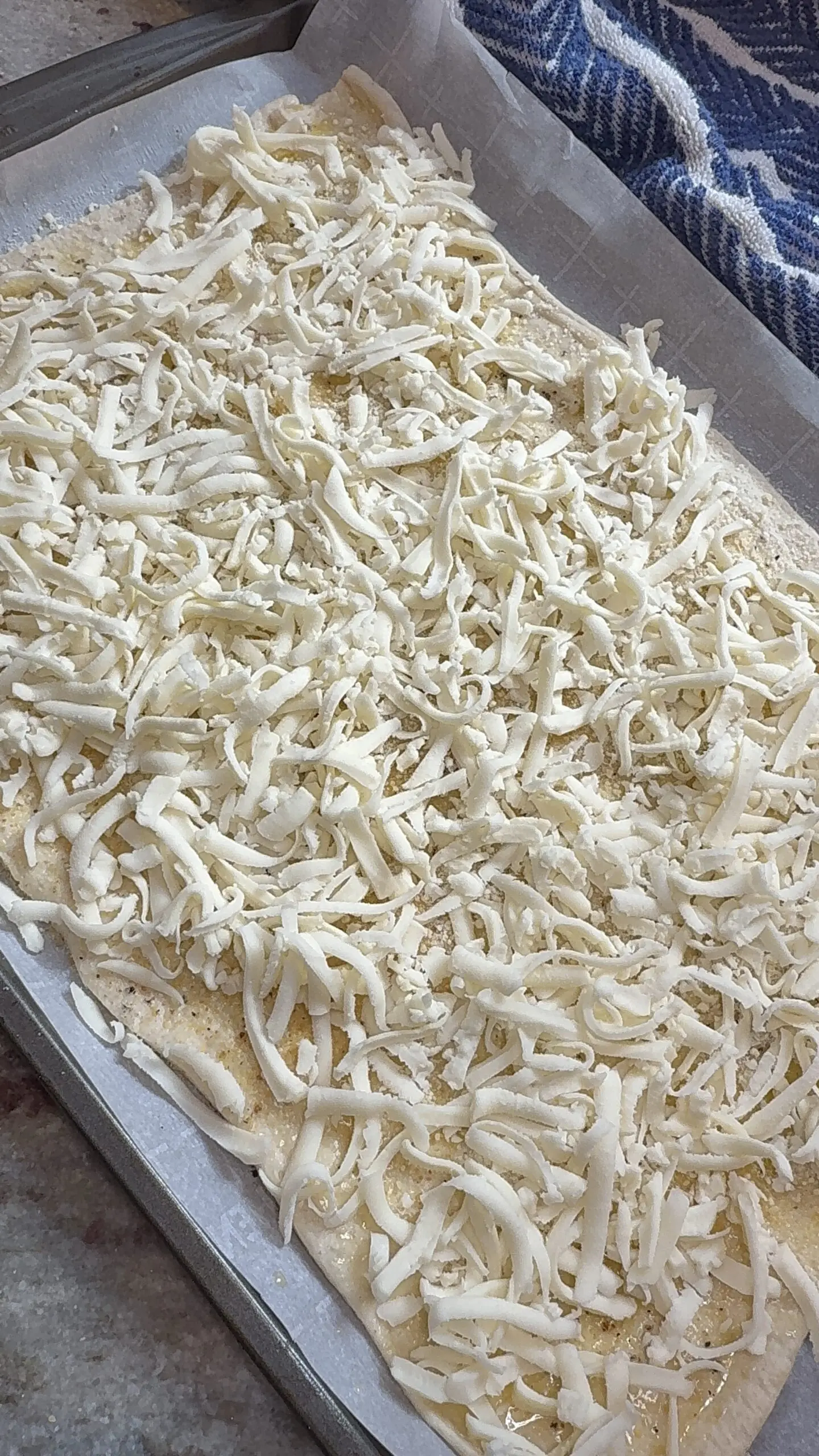 - 1.5 Cups Mozzarella Cheese, hand shredded