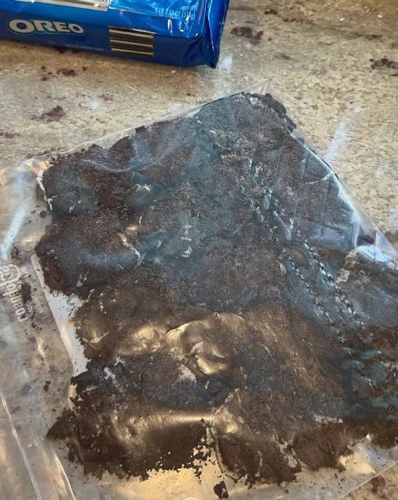 - Next, add the Oreos to a plastic bag and crush them by gently hitting them with a rolling pin. Make them as thin or as chunky as you’d like.
