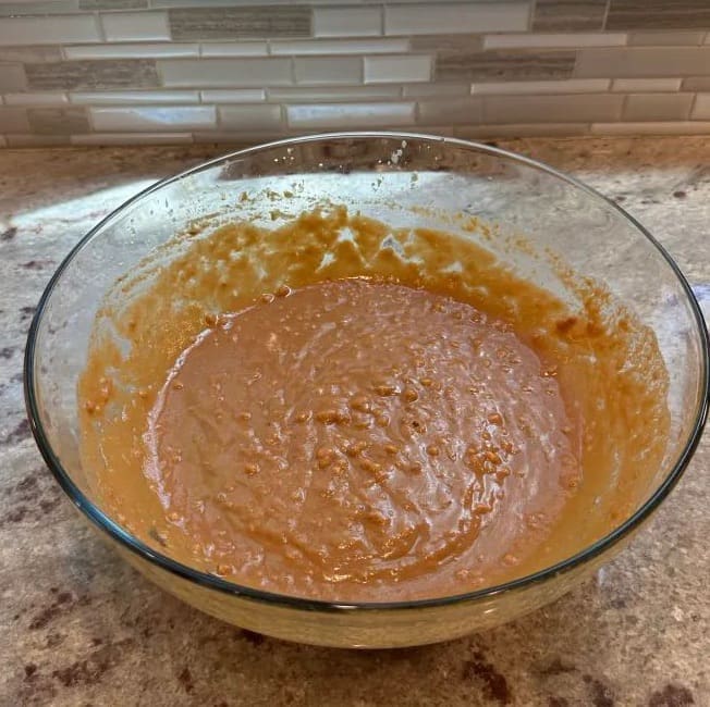 - Now add in the water and whisk everything together until it’s evenly combined. (Add more water for a thinner consistency if you’d like).