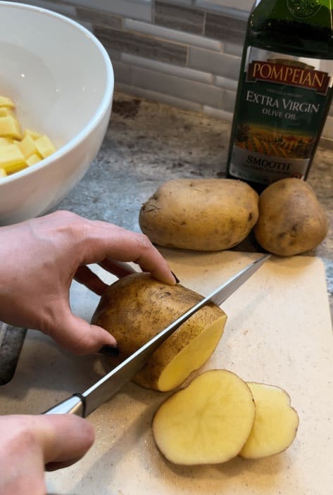 If you’d like to spare yourself from too much chopping, halved baby potatoes are a great choice, too.