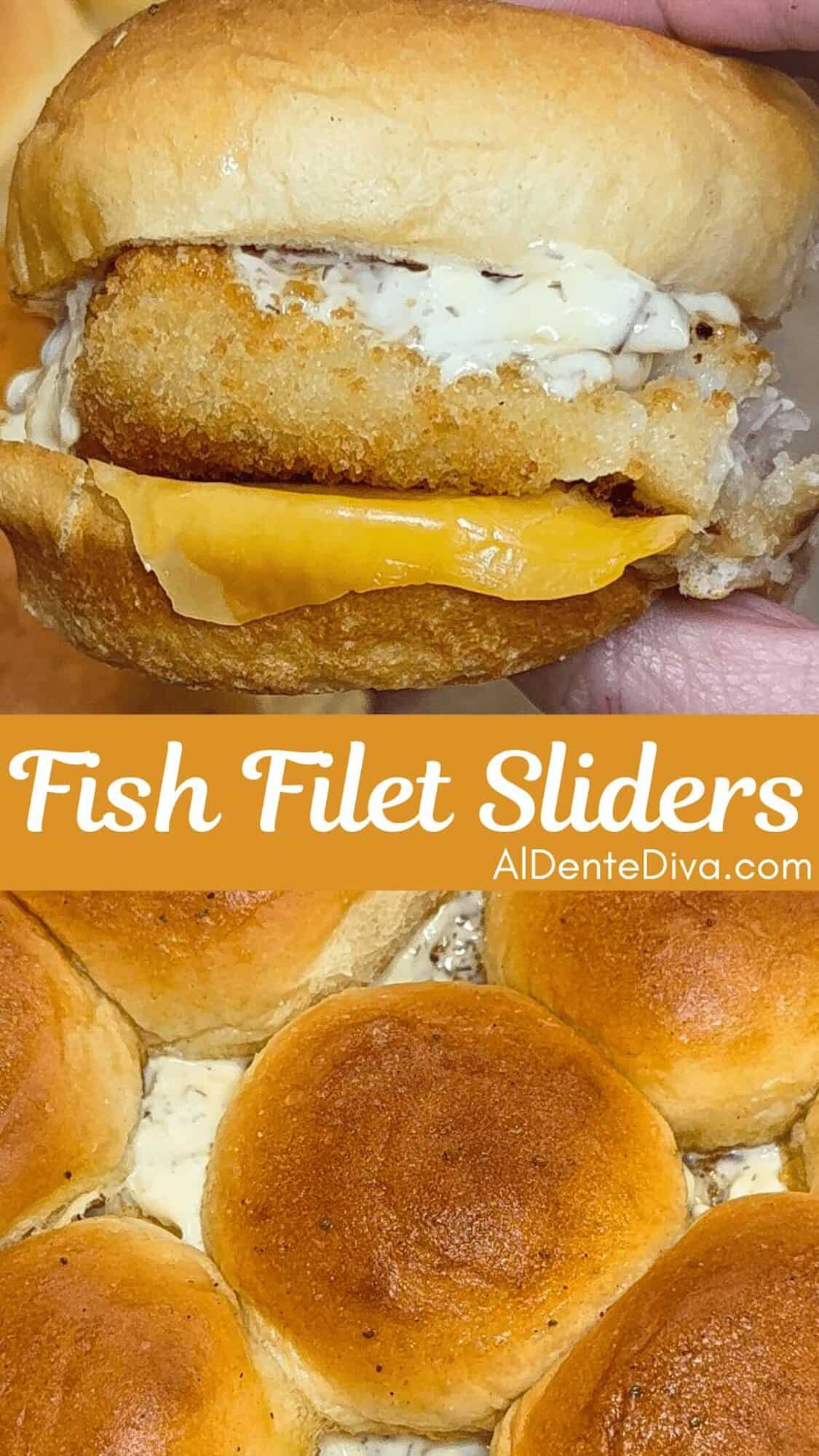 Fish filet sliders are a super delicious and easy to make recipe using breaded cod filets, American cheese and homemade tartar sauce in between toasted Hawaiian rolls.