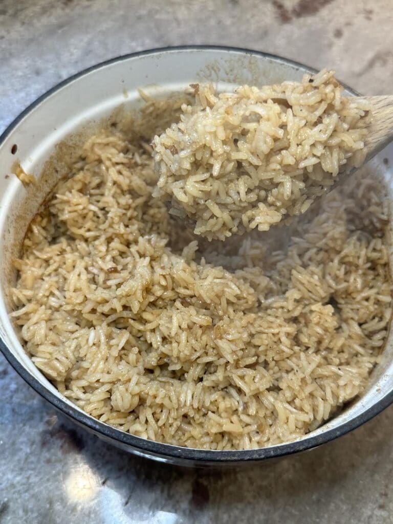 I discovered the recipe for this French onion rice only a few years ago, and it became a fast family favorite.