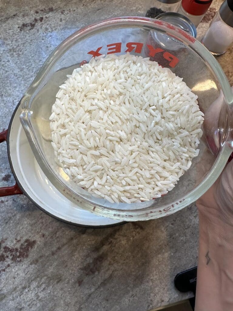 Then pour in the rice.