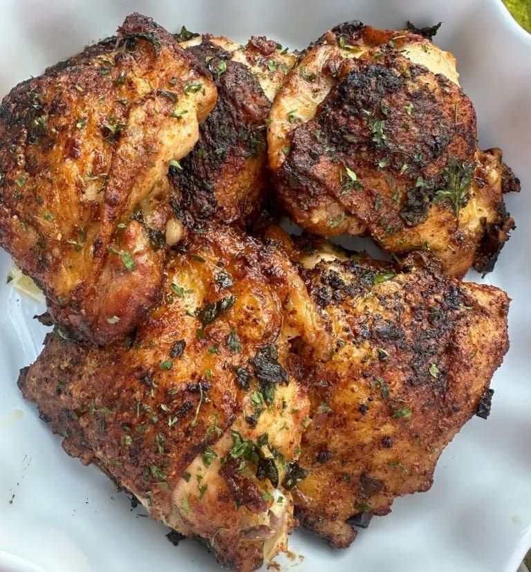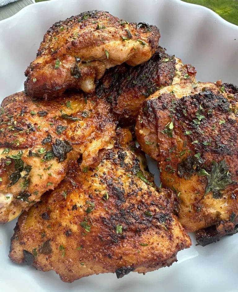 - Chicken- bone in, skin on chicken thighs will give you the best flavor for this recipe but chicken breast, legs and skinless, boneless thighs will work, too. Just adjust cooking times to make sure your chicken reaches an internal temperature of 165°.
