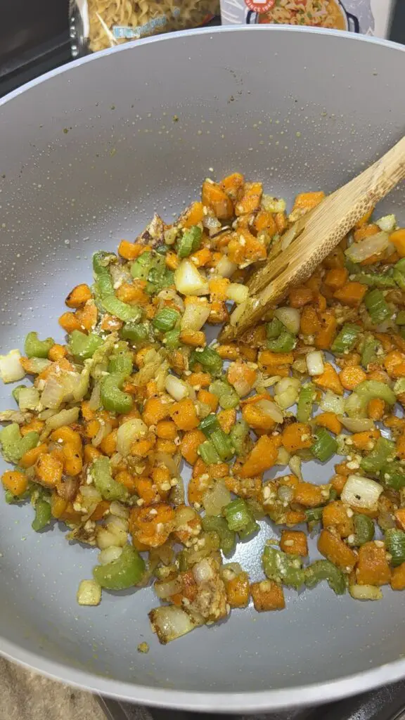 - Carrot, Celery And Onions- The classic mirepoix! Be sure to cut the vegetables in relatively the same size so they cook evenly together.