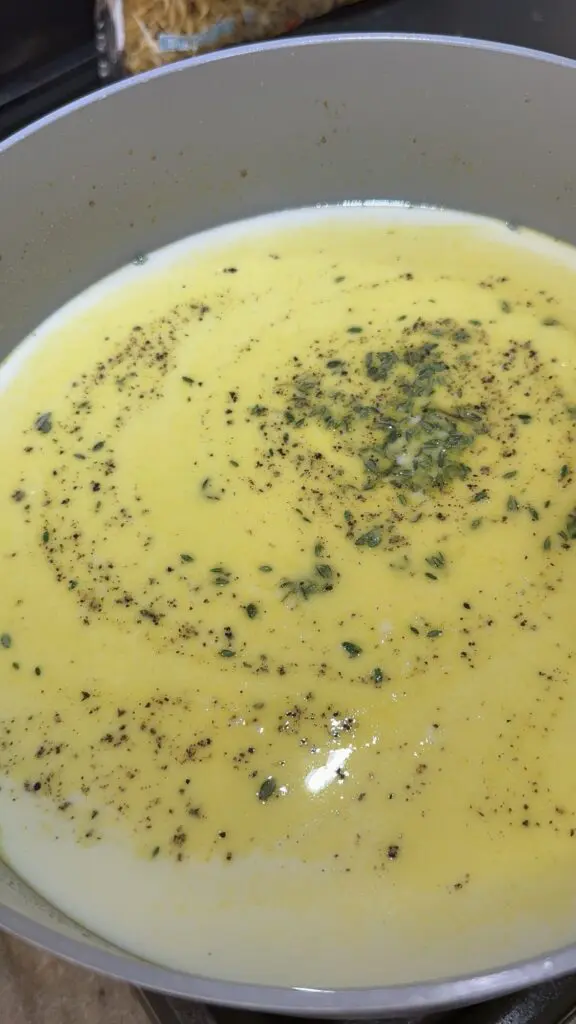 - Seasonings- Salt, Pepper, Garlic Powder and Thyme all come together to add lots of flavor to this soup.