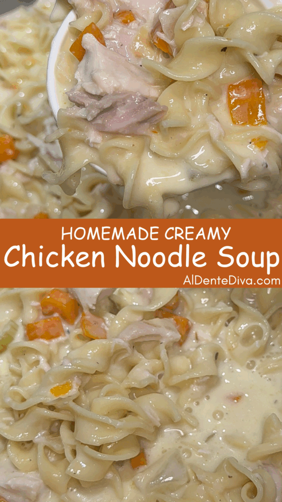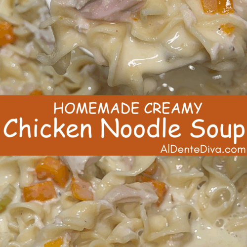 Homemade creamy chicken noodle soup is a rich and comforting classic, filled with juicy chicken, hearty vegetables, and tender noodles in a a velvety broth that will be warm you from the inside out.