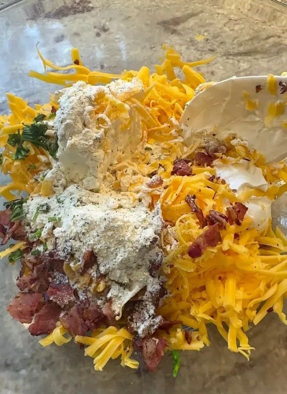 - Bacon- use bacon bits or cooked and crumbled bacon.