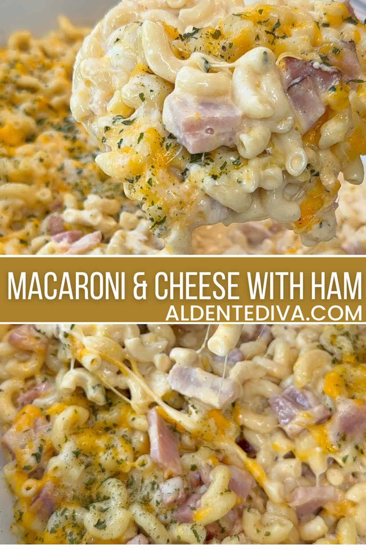 Macaroni and Cheese with Ham is a creamy, cheesy baked pasta loaded with tender macaroni and diced ham, making it the perfect way to use up some of that leftover holiday ham.