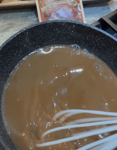 - In the meantime, make the gravy according to the directions on the back of the package.