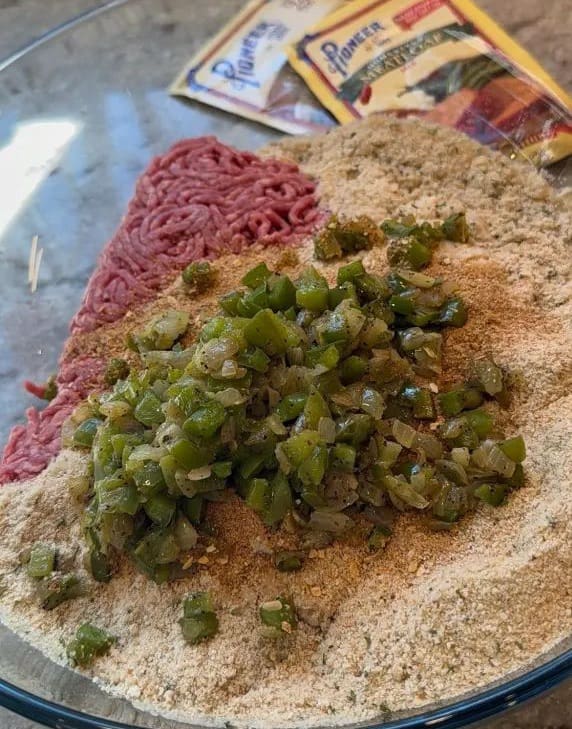 - Pioneer Meatloaf Mix Packet (or season with Salt, Pepper and Garlic Powder)