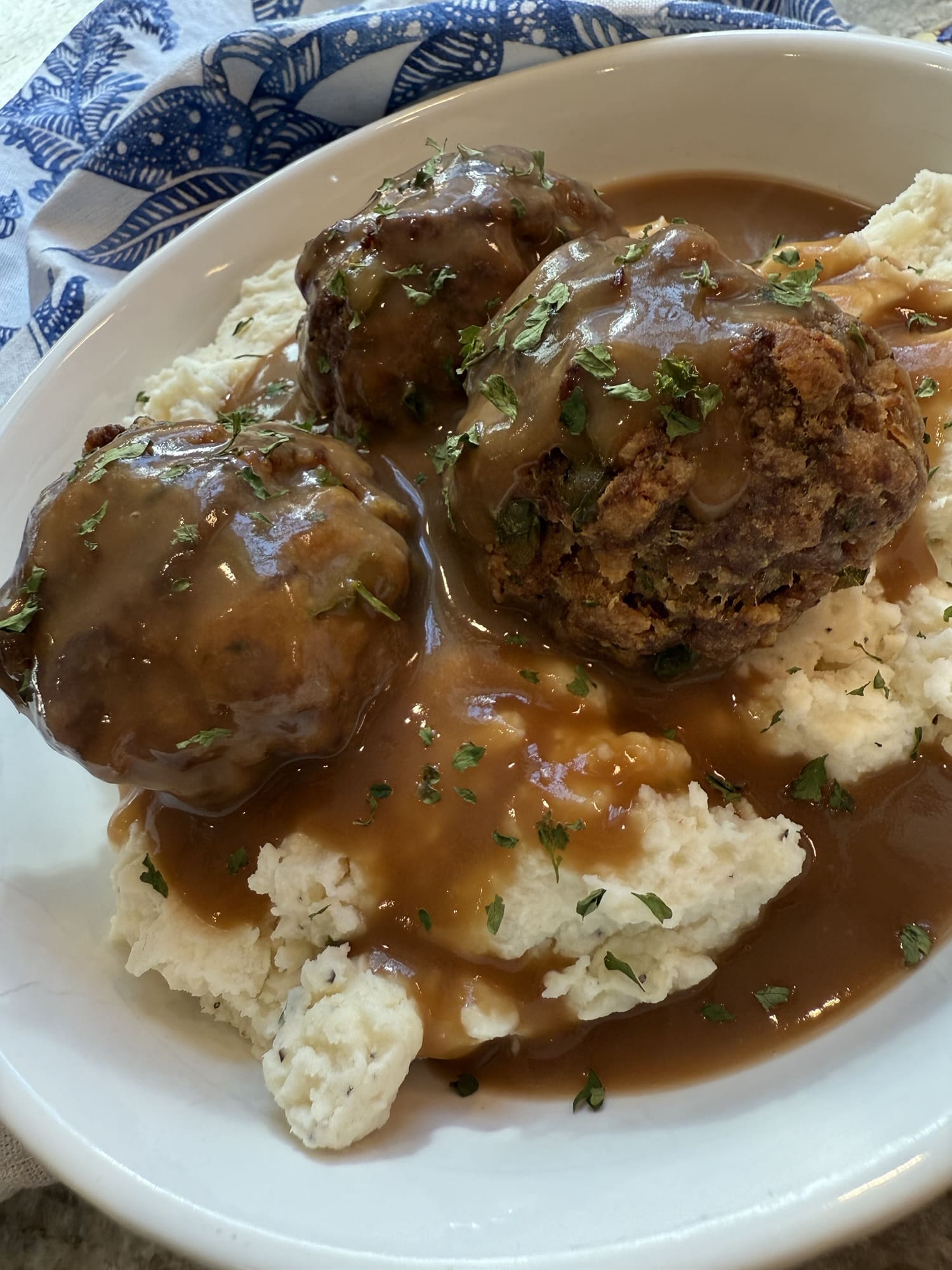 Meatloaf meatballs in gravy are such a delicious weekday dinner.
