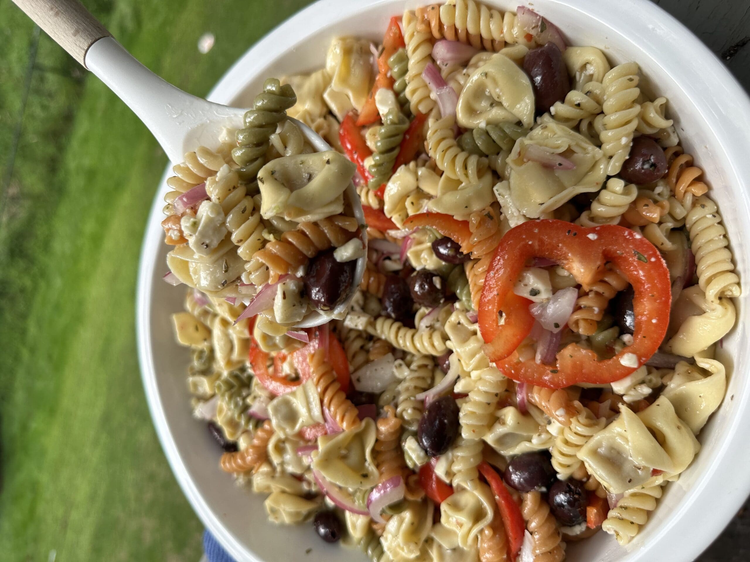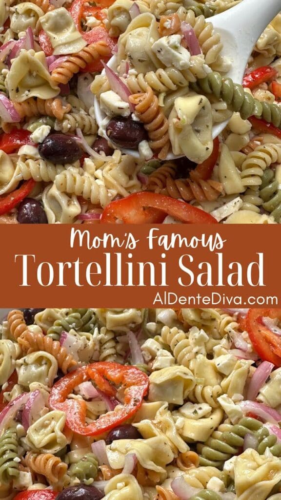 This is my Mom’s famous tortellini salad recipe that my family grew up on and still eat to this very day.
