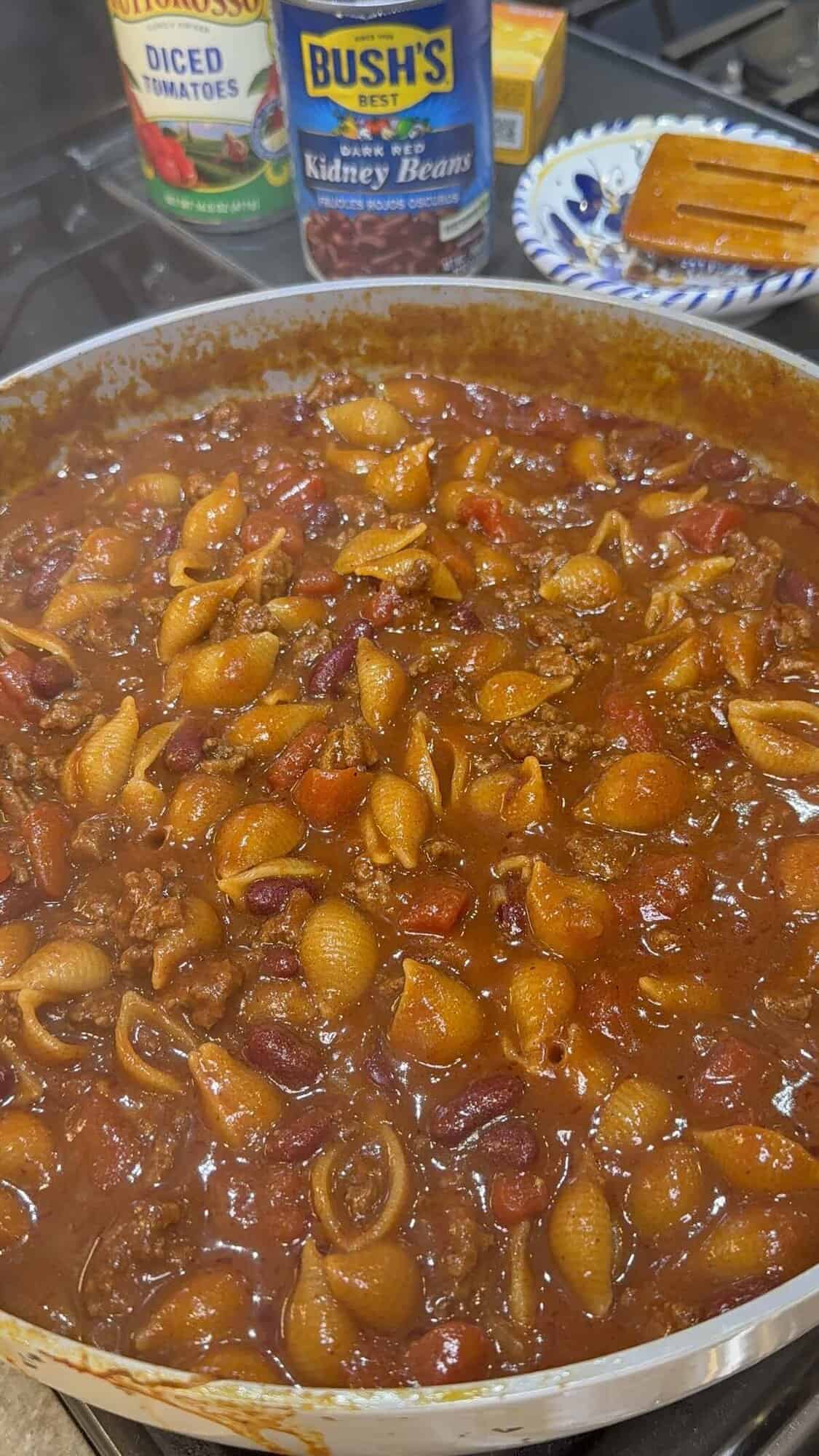 What makes this chili mac extra special is the Velveeta. It melts beautifully into the sauce creating a super creamy texture without any fuss. Combined with seasoned ground beef, tender pasta, beans and classic chili flavors, this dish is simple, satisfying, and guaranteed to be a repeat recipe!