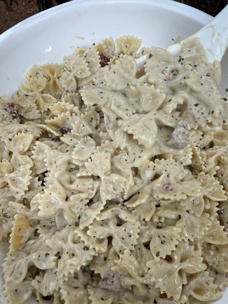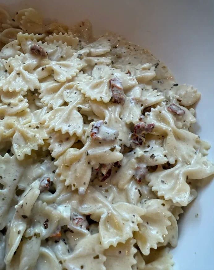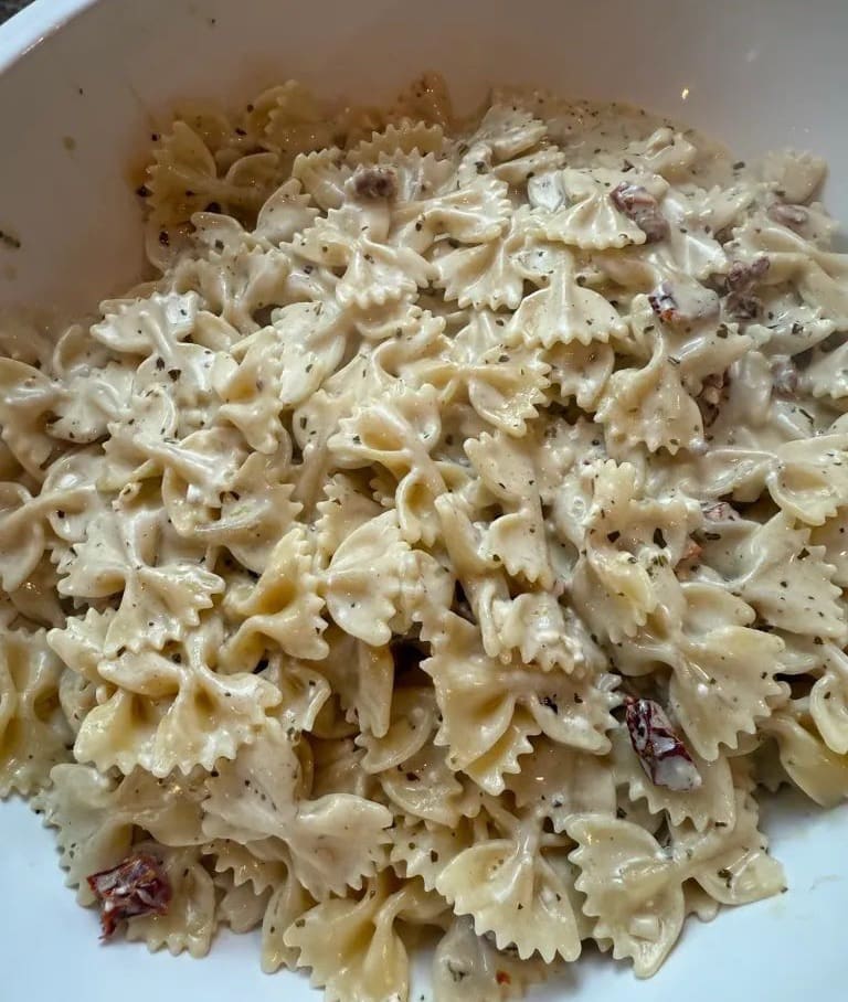 Pesto alfredo with sun dried tomatoes is a recipe that I’ve been making for years.