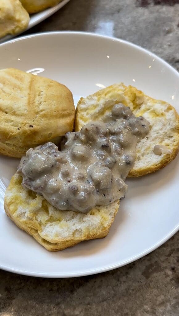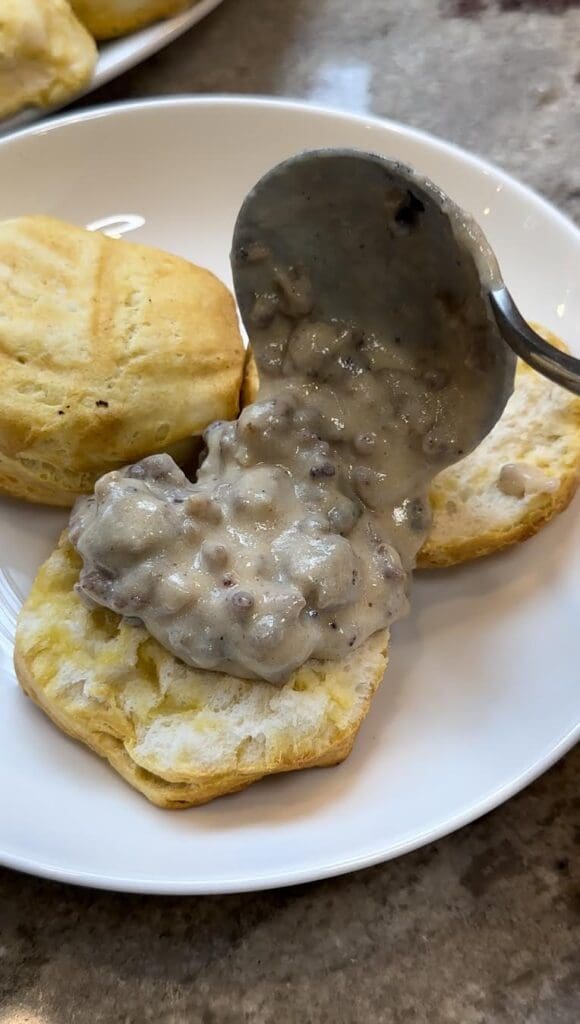 This sausage gravy and biscuits recipe is so simple and absolutely delicious.