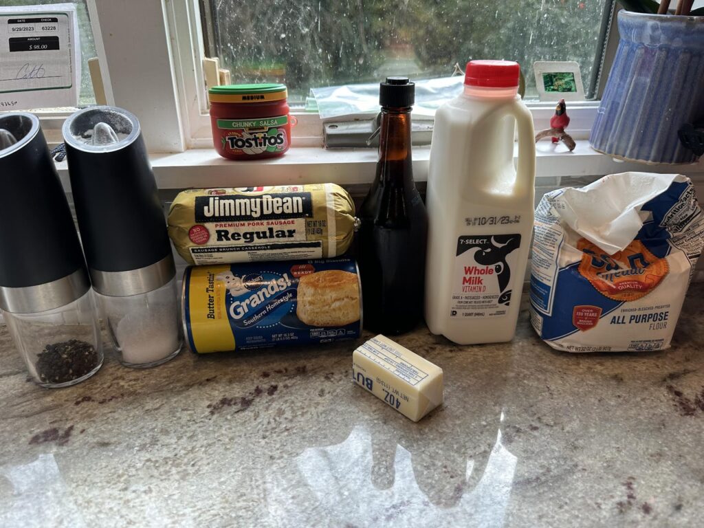 Finally, split open the biscuits and spoon the sausage gravy over it.
