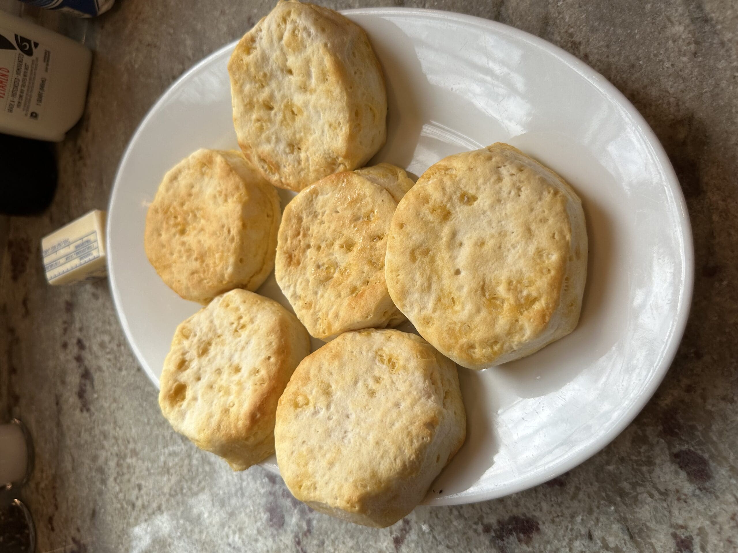 First, make the biscuits according to the directions on the back of the premade biscuit can. I used my air fryer to make them.