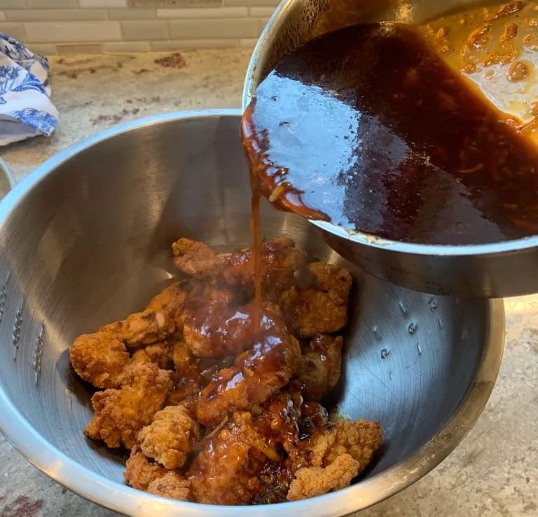Keep the sauce warm until the chicken tenders are ready to come out of the oven.