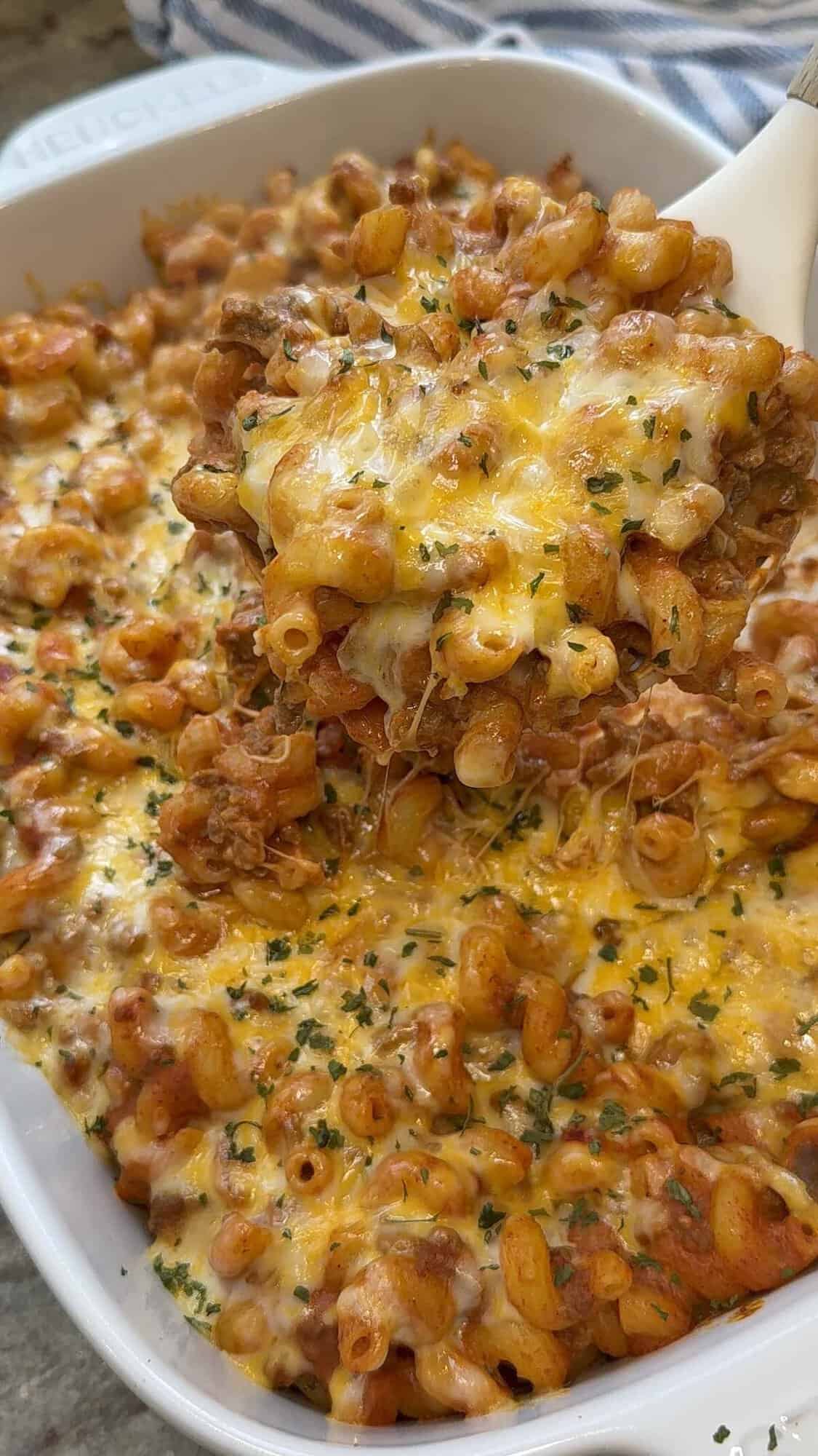 Sloppy Joes were one of those dinners that felt like a treat to me growing up. They’re messy, saucy, and somehow better than a regular plain old burger. This recipe takes all those familiar flavors that we love and turns them into a cheesy baked pasta that’s easy to serve and impossible not to like. It’s comfort food at its best with zero fuss.