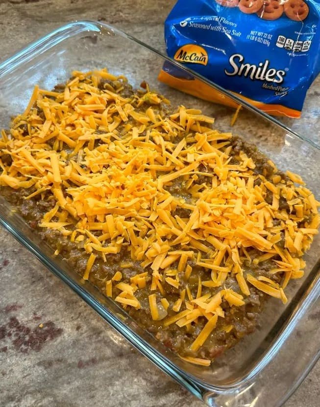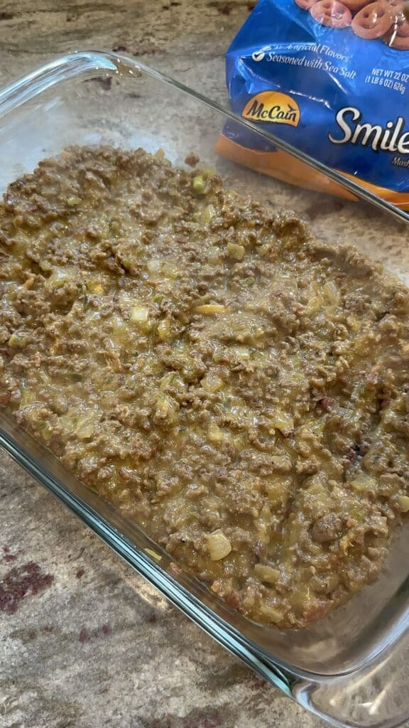 - 22 oz bag McCain Smile Fries (use as many as you need to top the casserole)
