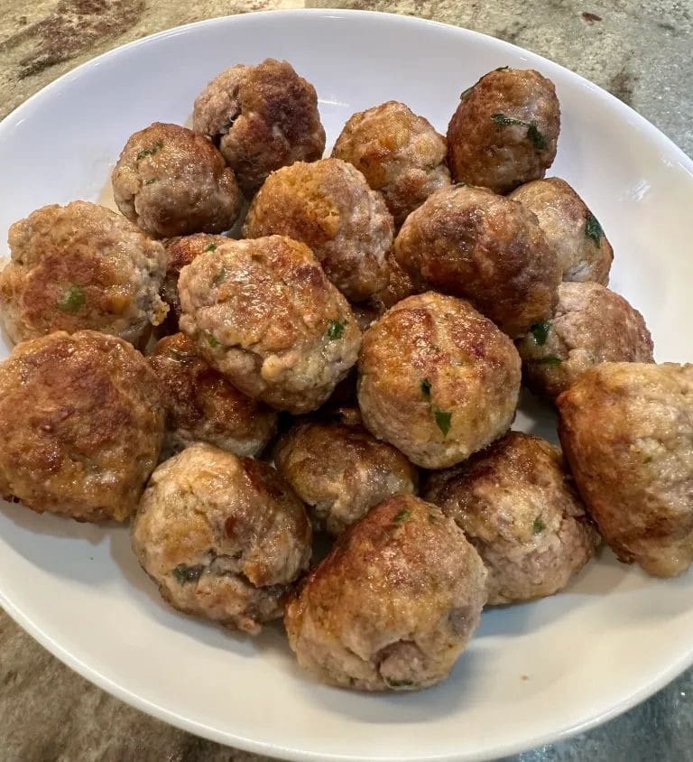 - Working in batches, pan fry the meatballs on all sides until they are golden brown. When done, remove them from the pan and set them aside.
