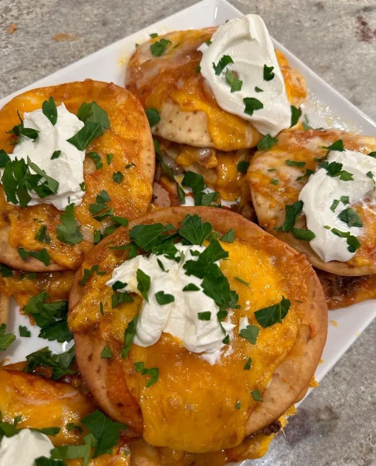 Finally, top them with sour cream, chopped parsley or whatever you’d like and enjoy.