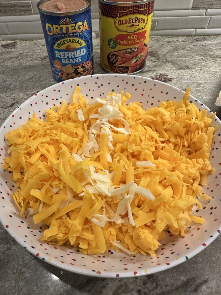 Next add some more enchilada sauce and shredded cheese.