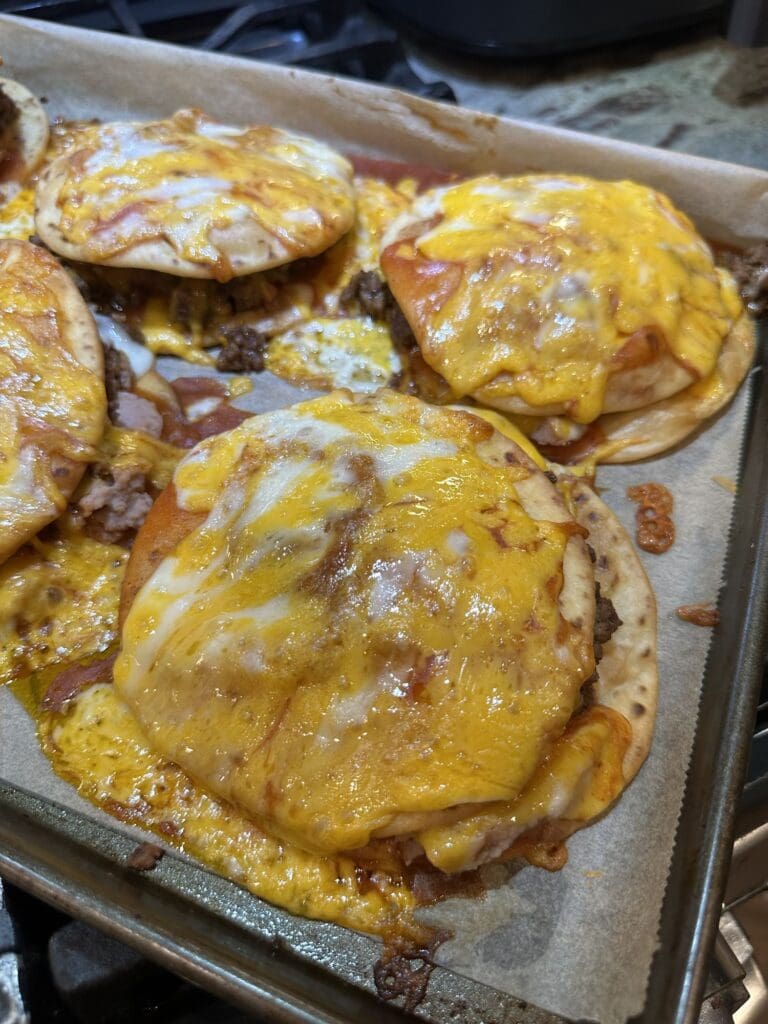 Bake them in the oven until the cheese is melted.