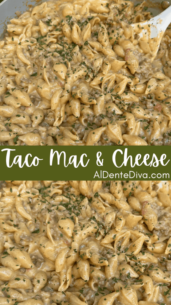 Taco mac and cheese combines all of the delicious flavors of tacos and macaroni and cheese into one delicious, crowd pleasing dinner.