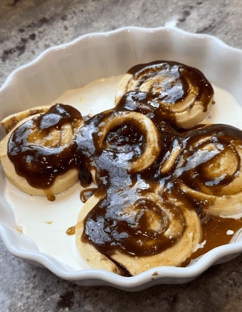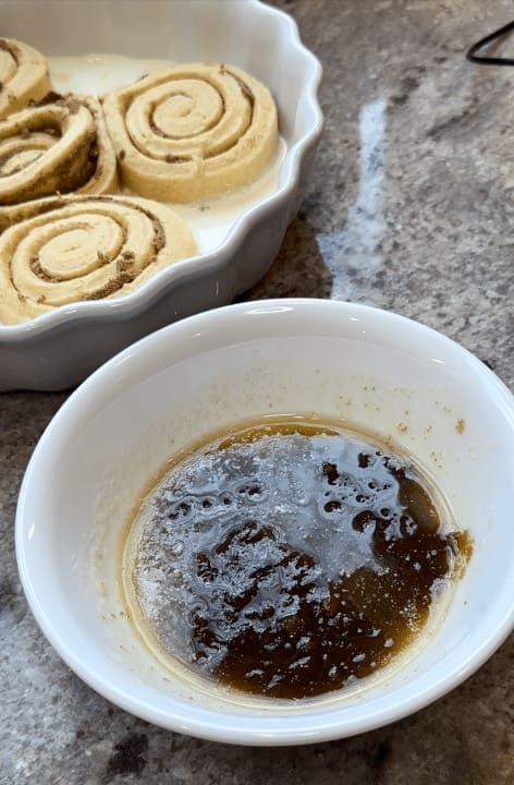 After that, pour the butter mixture over the cinnamon rolls.