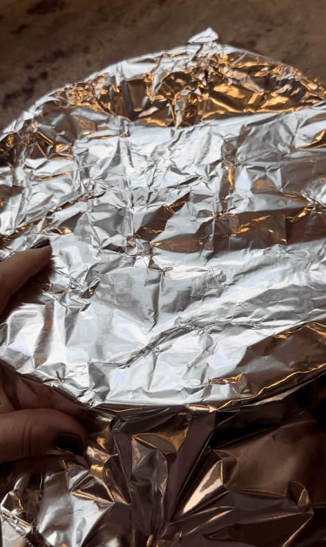 Next, cover them with tin foil and bake them in a 350° oven for 30 minutes.