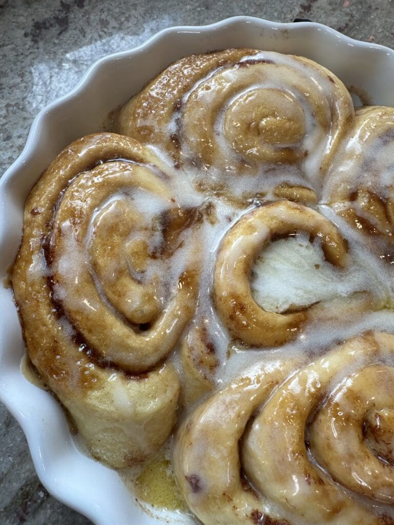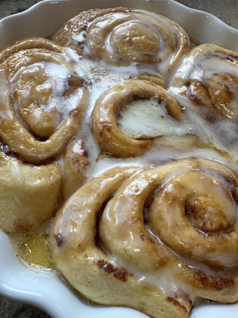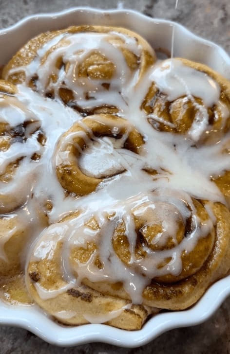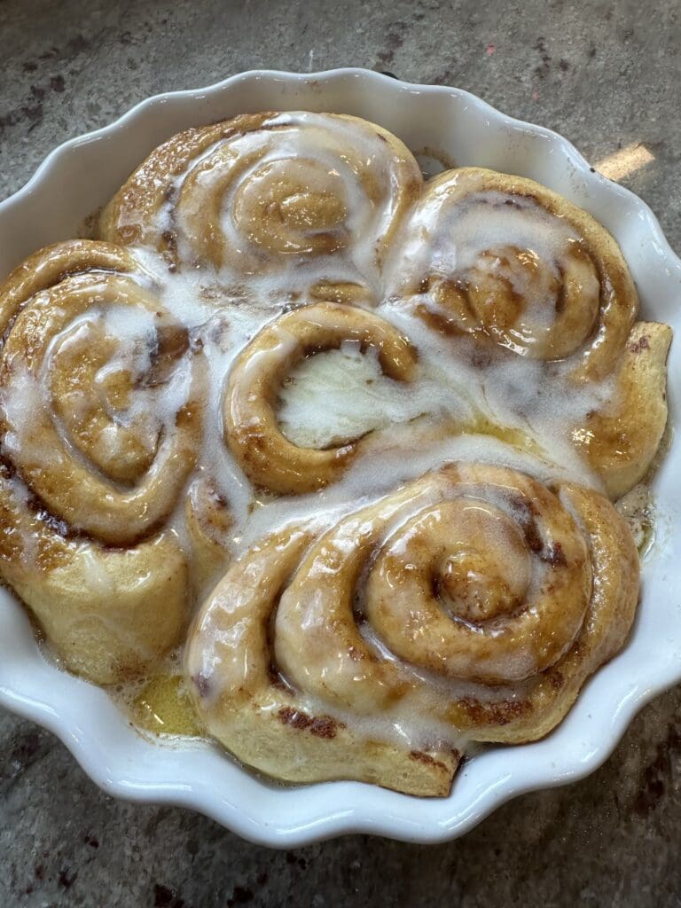 Now, remove them from the oven pour over the icing that came with the cinnamon rolls.