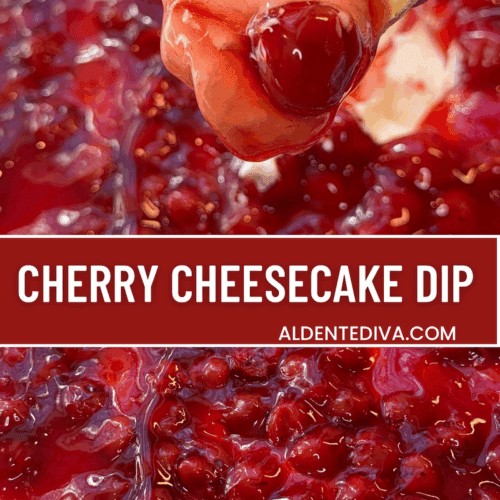 Cherry cheesecake dip is made with softened cream cheese, marshmallow fluff and cool whip topped with cherry pie filling for a delicious and easy dessert.